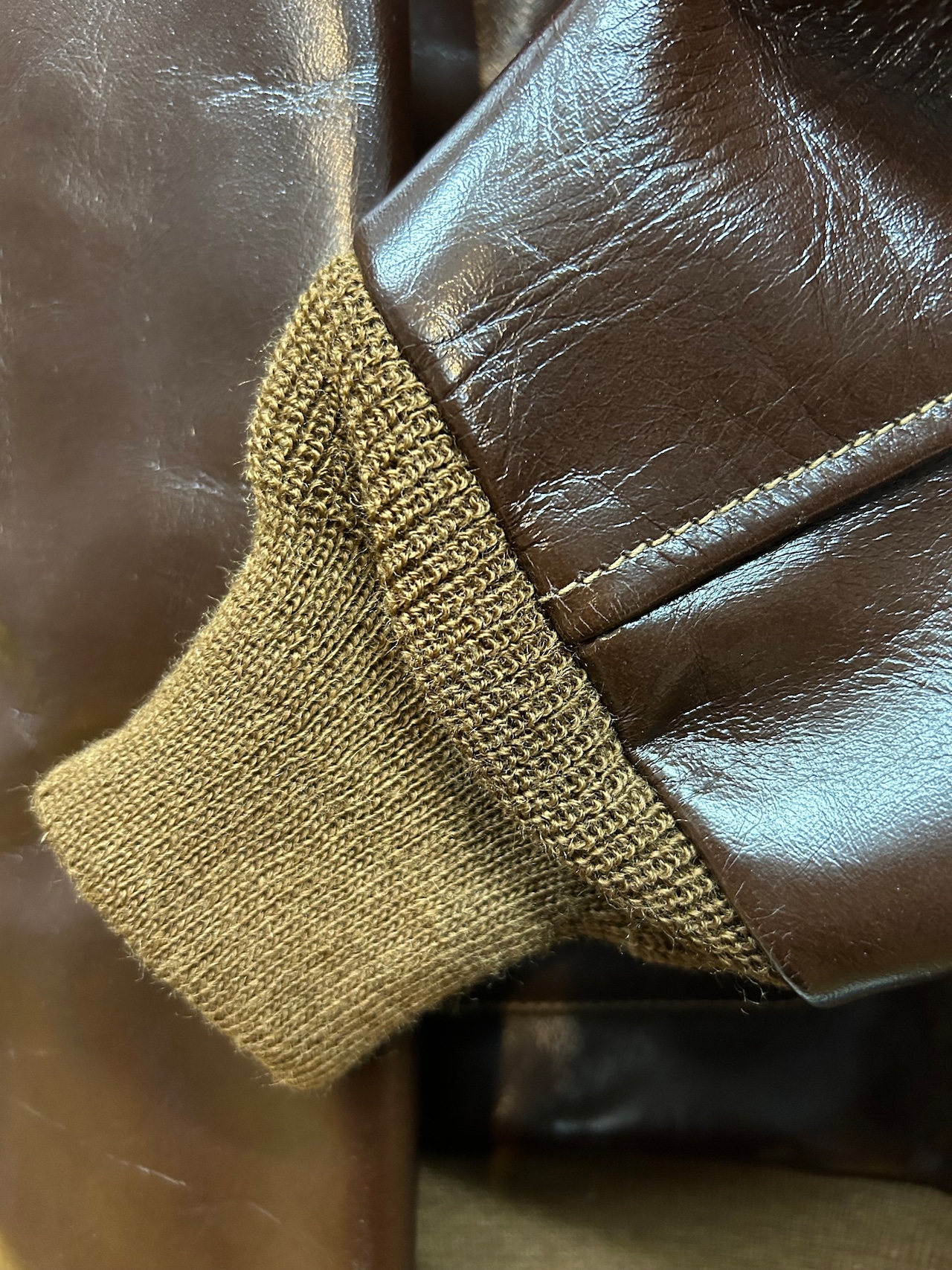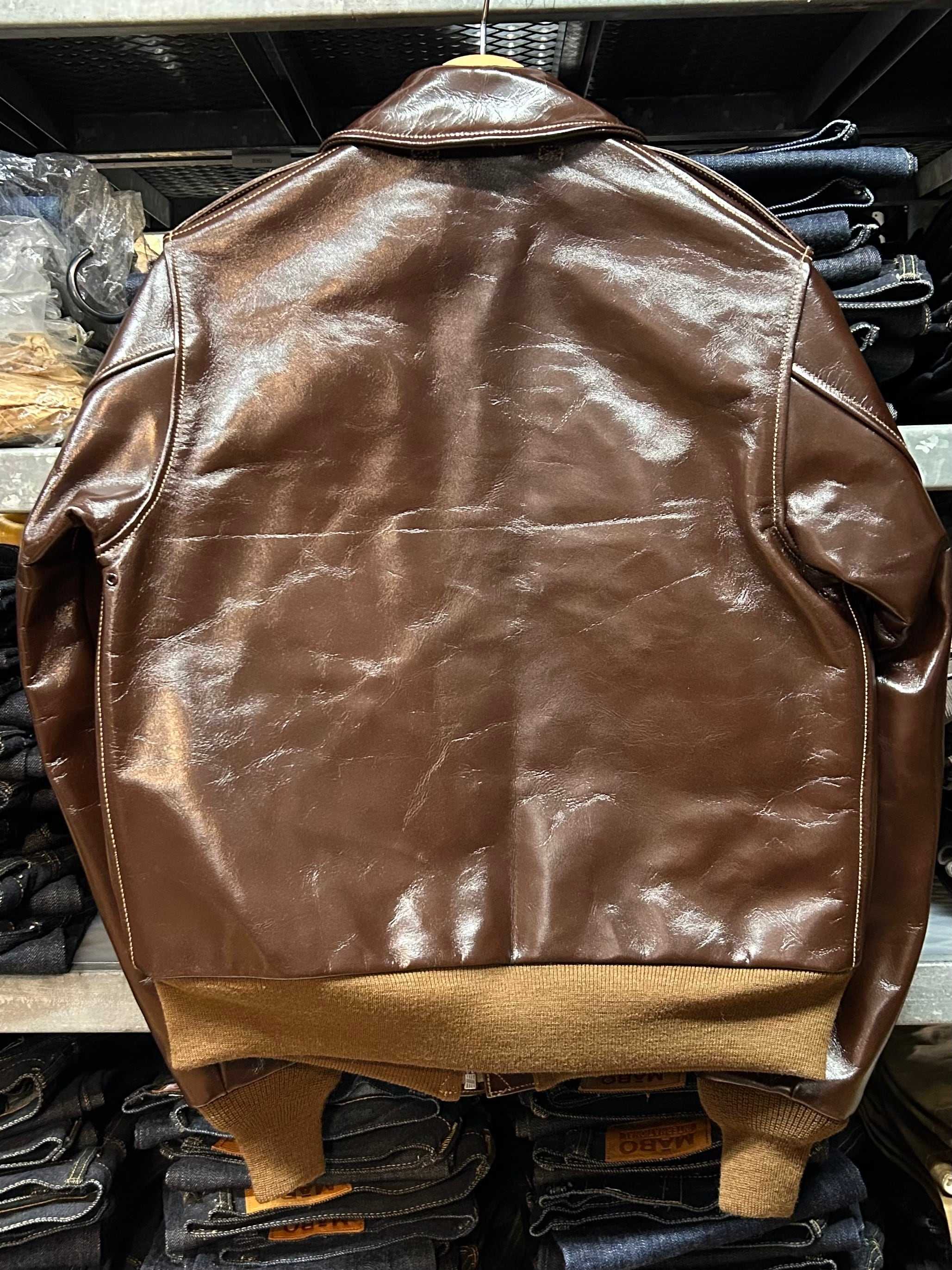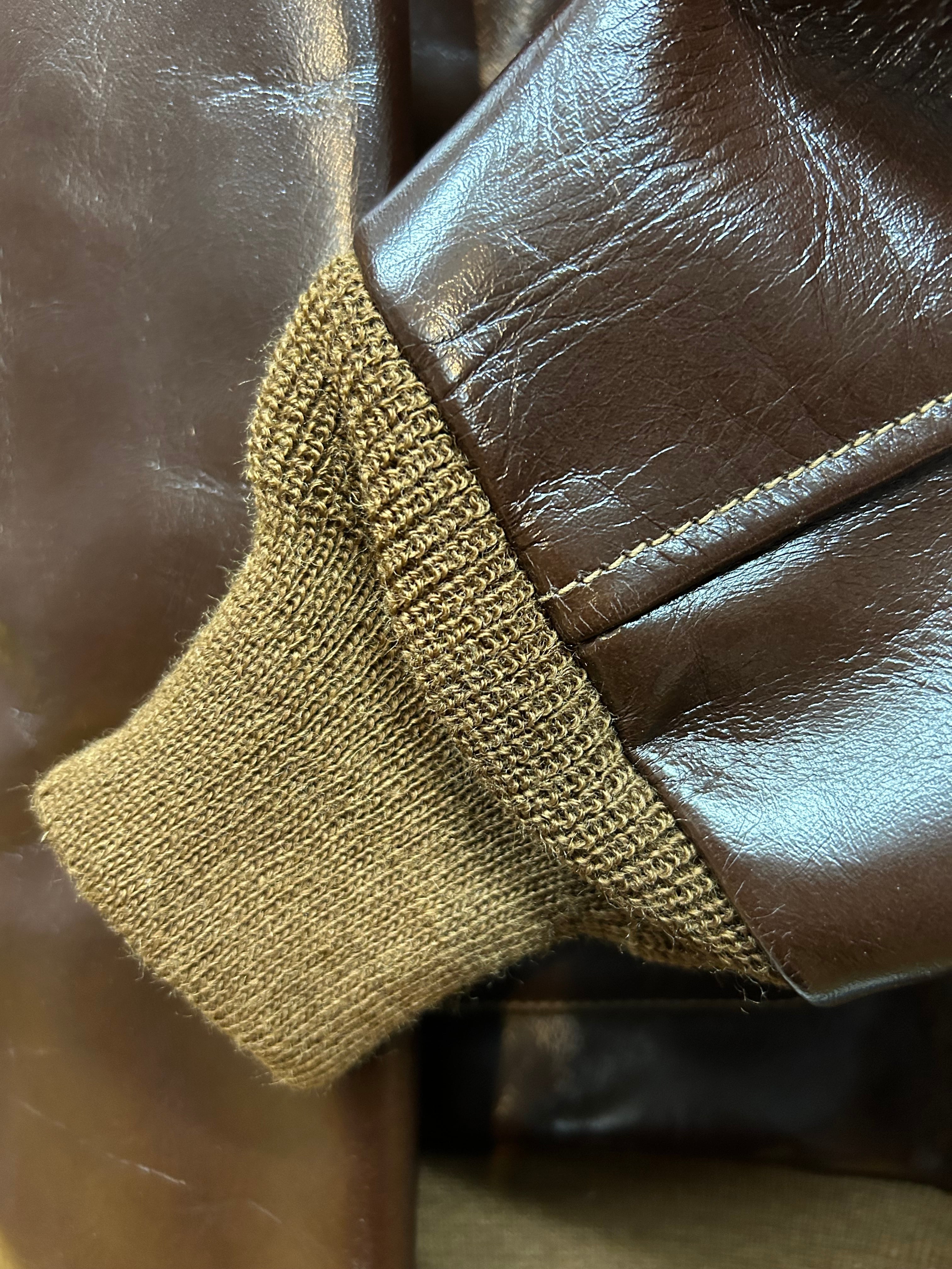 このジャケットに使用している革はイタリア産の原皮を樹皮から抽出したタンニン槽に漬け置きし濃度を変えながらゆっくりと時間を懸けて鞣されている。丹念に鞣された後、職人の手によってシールブラウンのアニリン染料が擦り込まれている。